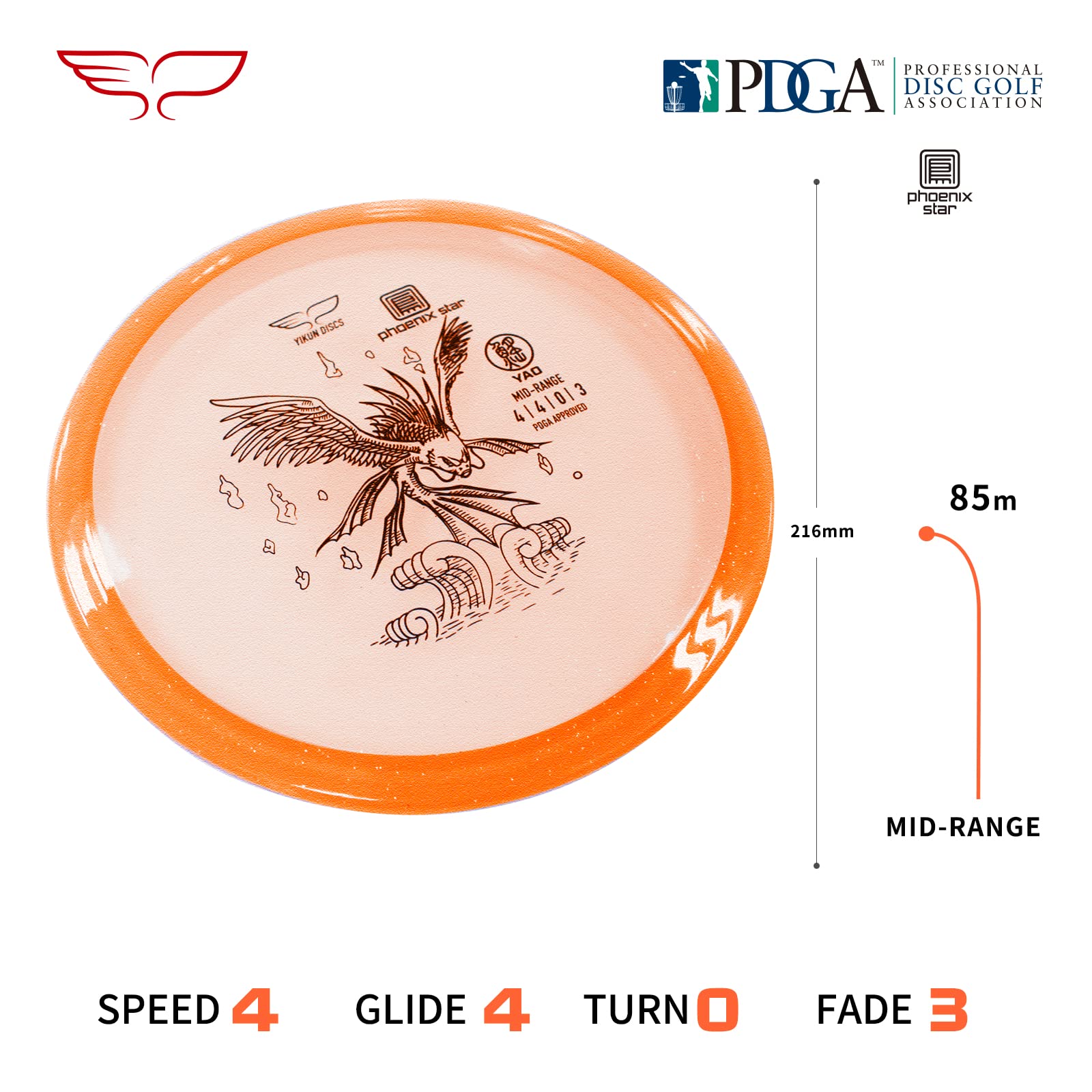 - インクン YAO は大口径アプローチディスクです, そしてその安定性で有名です. 強い向かい風の中でも, ラインを維持してフェードアウトすることができます. また、大きく安定したフェードにより、アプローチショットで予測可能で正確な着地点が得られます。.